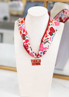 Show your Oklahoma pride with our Oklahoma Sooners Twilly Scarf featuring a Touchdown Pendant Necklace. Made from silky crimson-and-cream fabric and accented with a gold Touchdown charm, this versatile accessory is perfect for tailgates, touchdowns, and cheering on the Sooners in style.