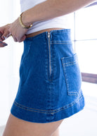 Score major style points in the First Down Denim Mini Skirt. This classic blue denim skirt is a game day essential, featuring a flattering high-rise fit and timeless mini length that pairs perfectly with everything from oversized sweaters to your favorite team tee. Easy to dress up with boots or keep casual with sneakers, this versatile denim mini is ready for tailgates, weekend outings, and everyday wear. A true boutique staple you’ll be reaching for all season long.