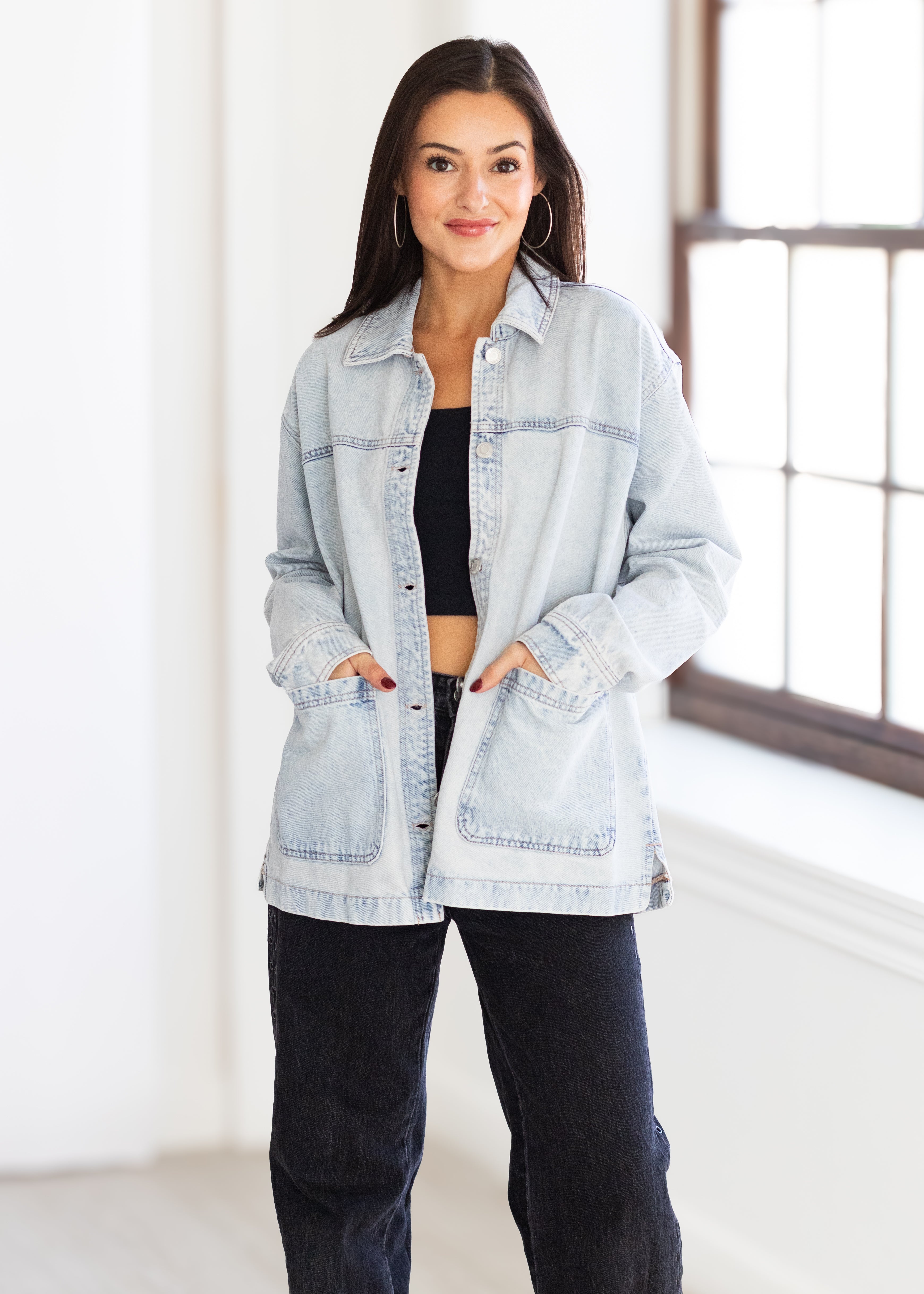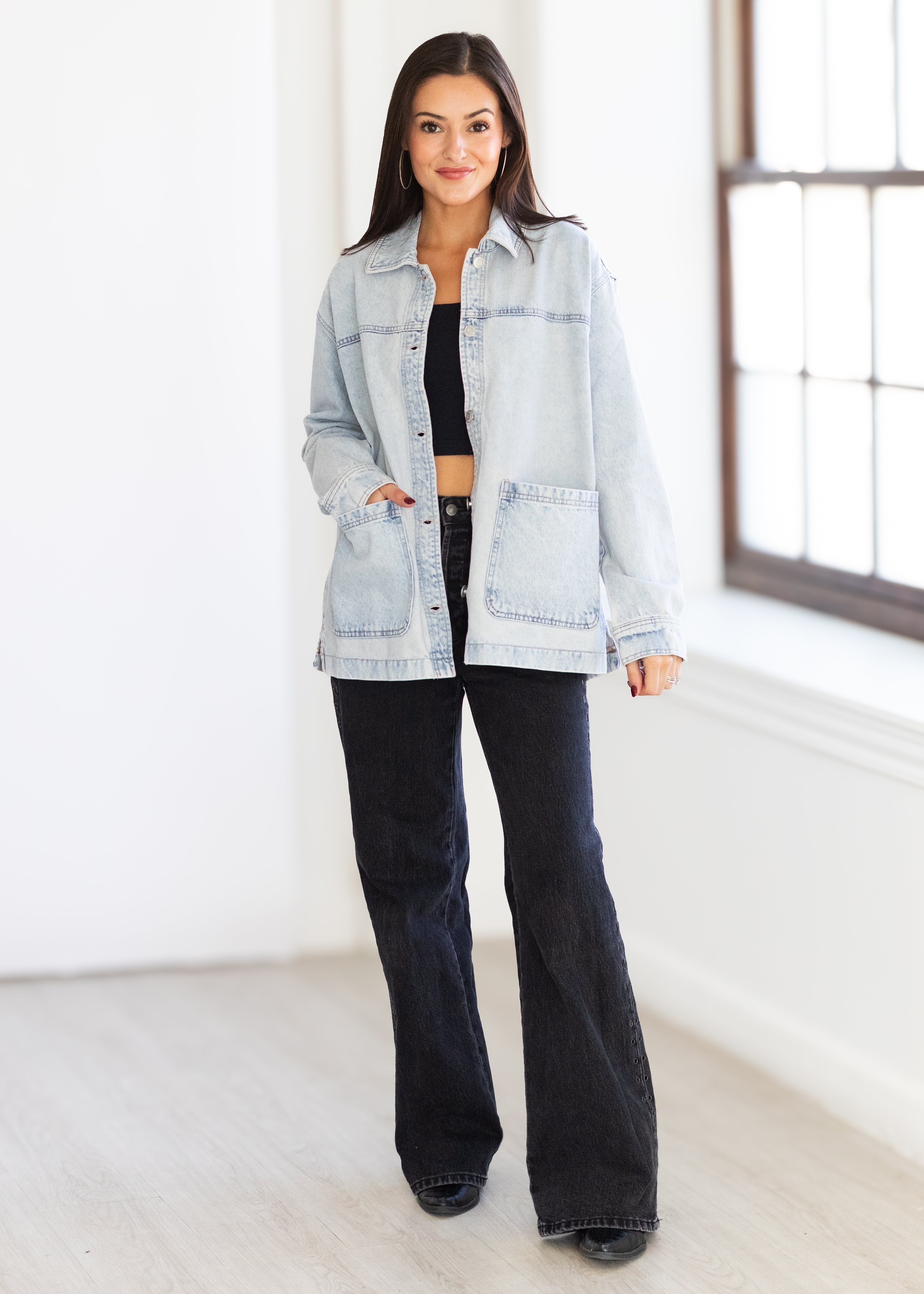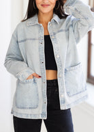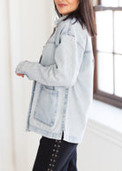Classic denim, redefined. This stretch denim jacket blends relaxed comfort with a structured silhouette, featuring a modern notch collar, button front, and oversized patch pockets. Designed for effortless layering, it’s the perfect throw-on-and-go piece for any season — from casual weekends to elevated everyday looks.