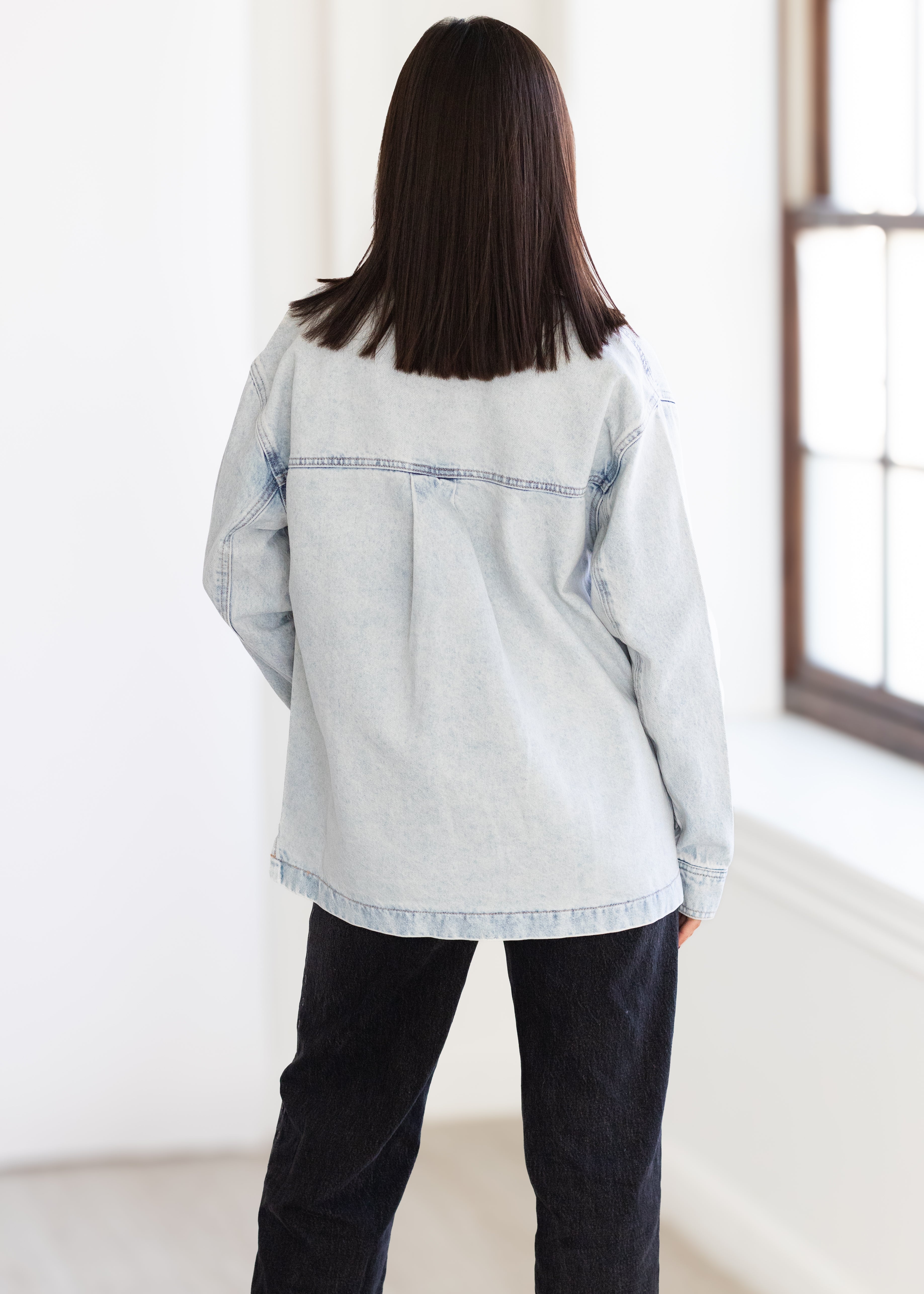 - Intentional oversized fit