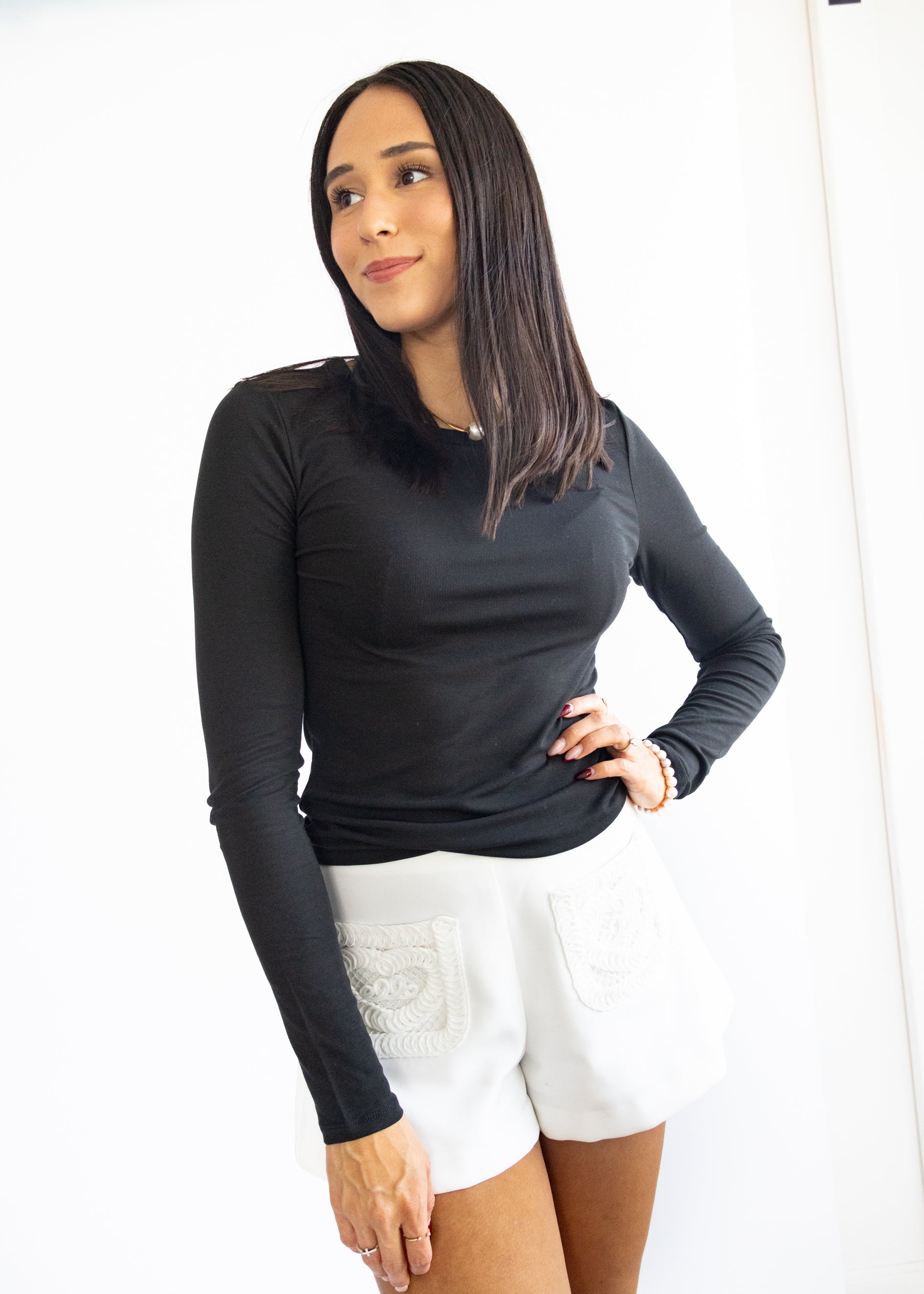 This crew neck top is made from our signature Second Skin Baby Rib with a touch of stretch for a flawless fit. It can be worn tucked or untucked and is easily layered over, making it a year-round go-to.