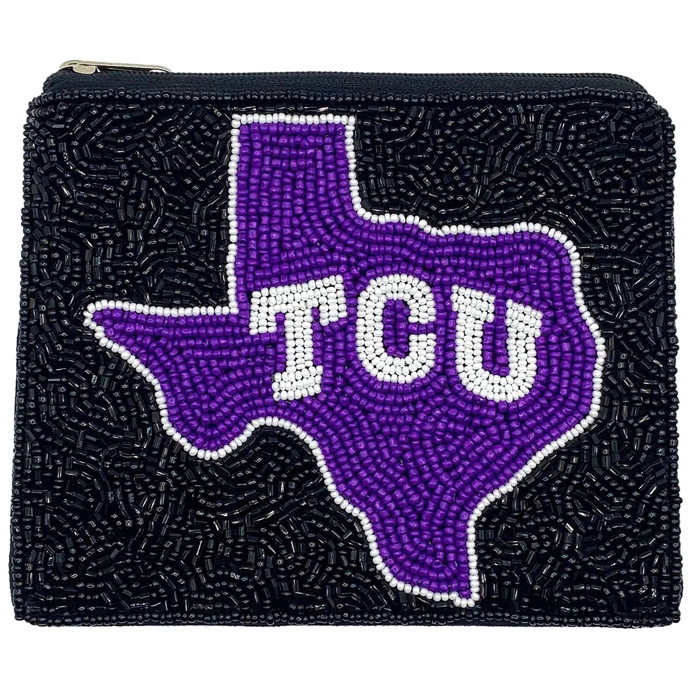 Show your Horned Frogs pride with this playful TCU beaded coin purse. Perfect for keeping your coins and small essentials secure, its unique design adds a fun, sporty touch to your everyday carry. Compact and eye-catching, it’s perfect to put inside your clear purse!
