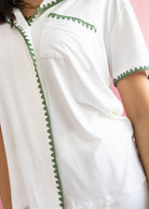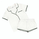 Bamboo PJ Short Set - White & Forest Green Whip Stitch