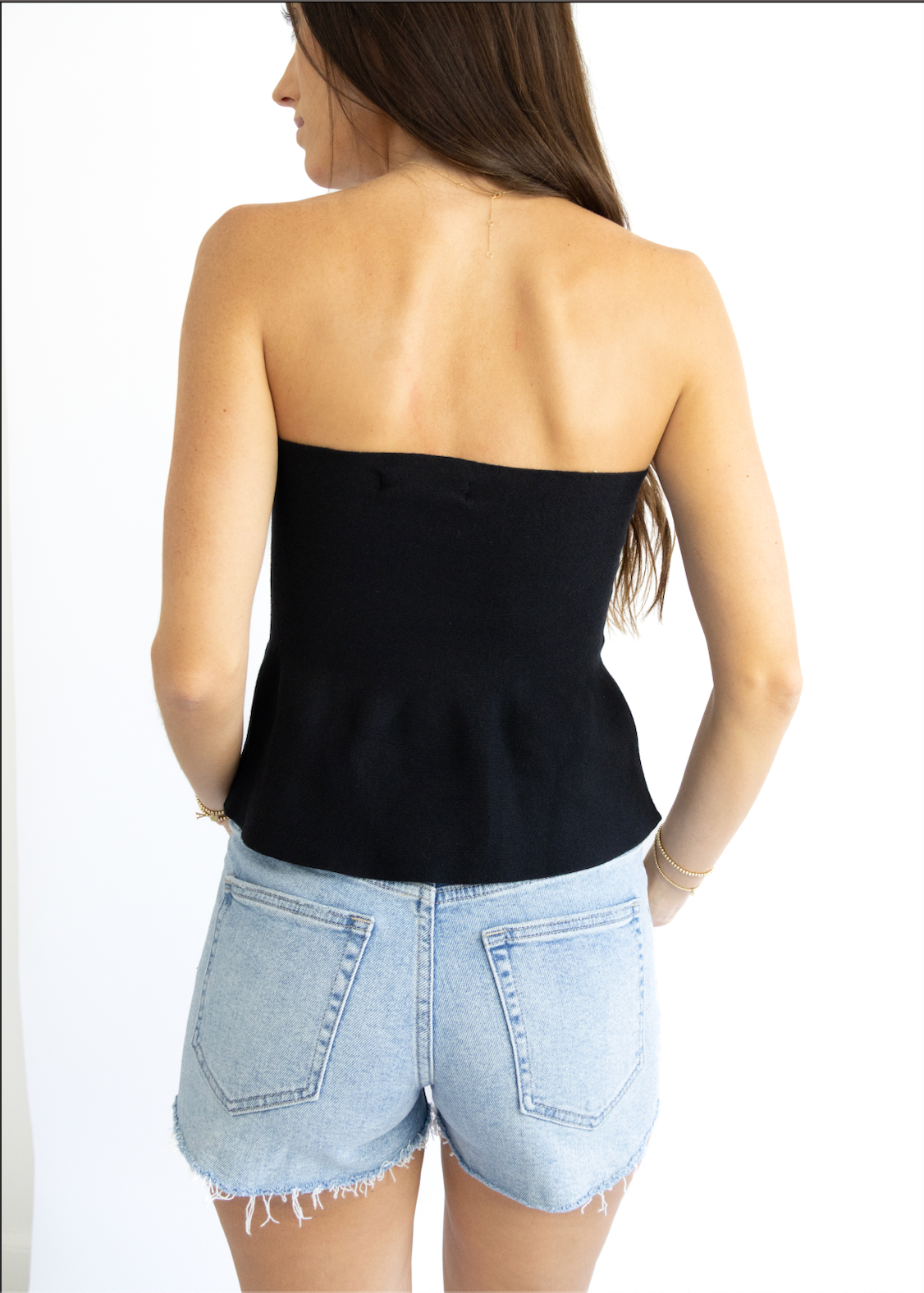 Sweet Elegance Strapless Peplum Top - Black