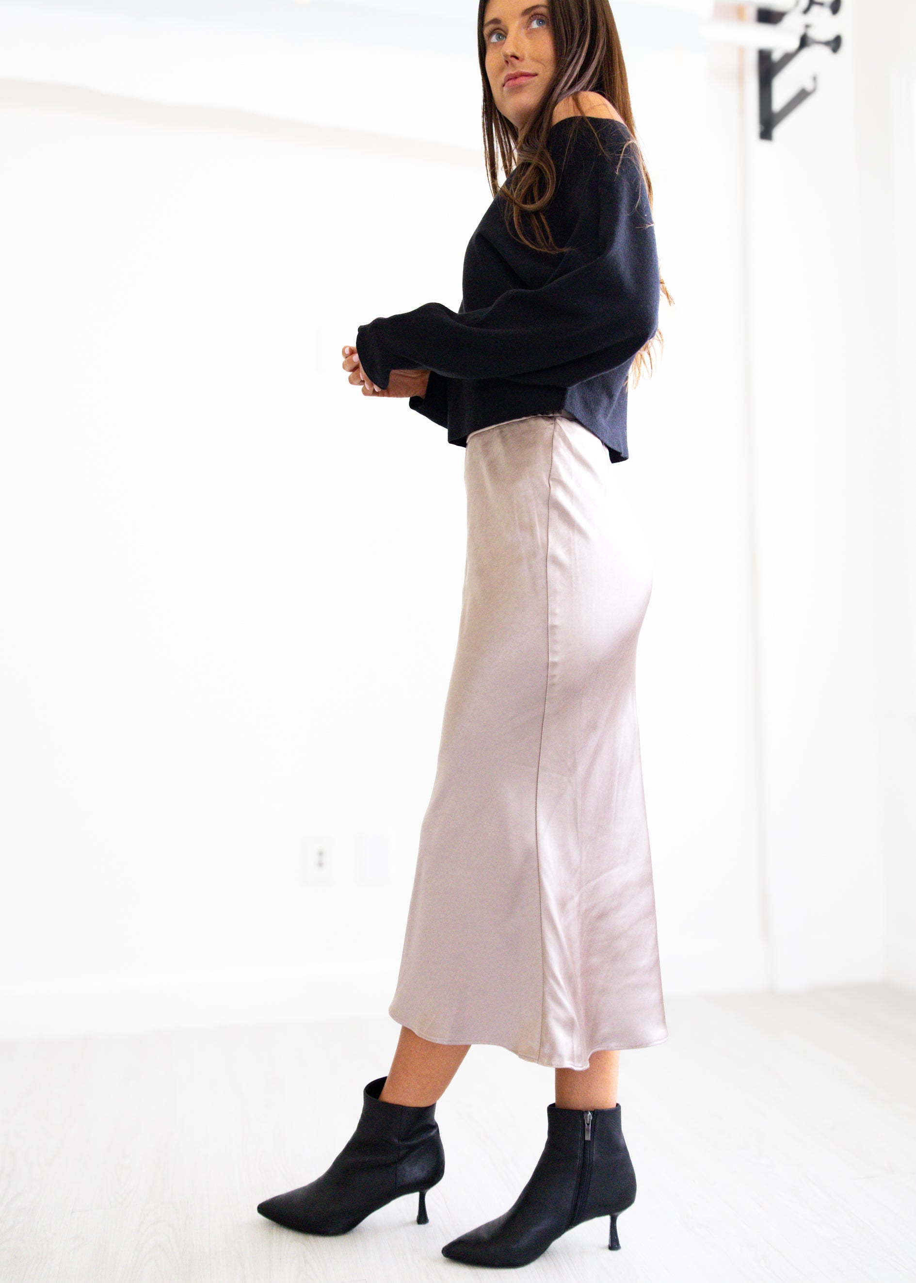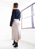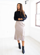 Taupe Satin Midi Skirt