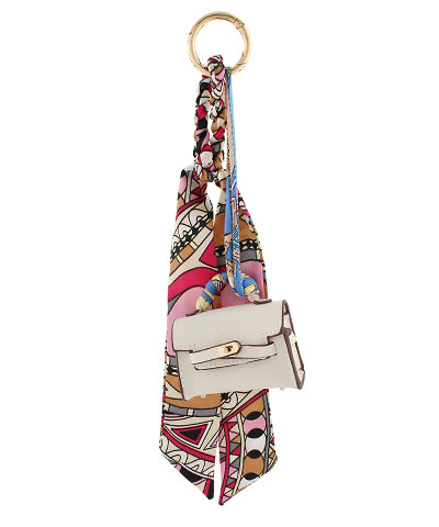 Mini Handbag Scarf Keychain - Ivory