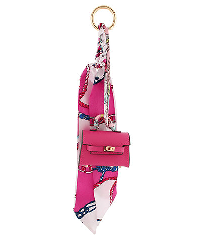 Mini Handbag Scarf Keychain - Fuchsia