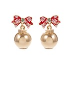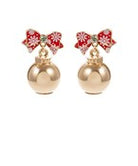 Christmas Ornament & Bow Drop Earrings - Red/Gold