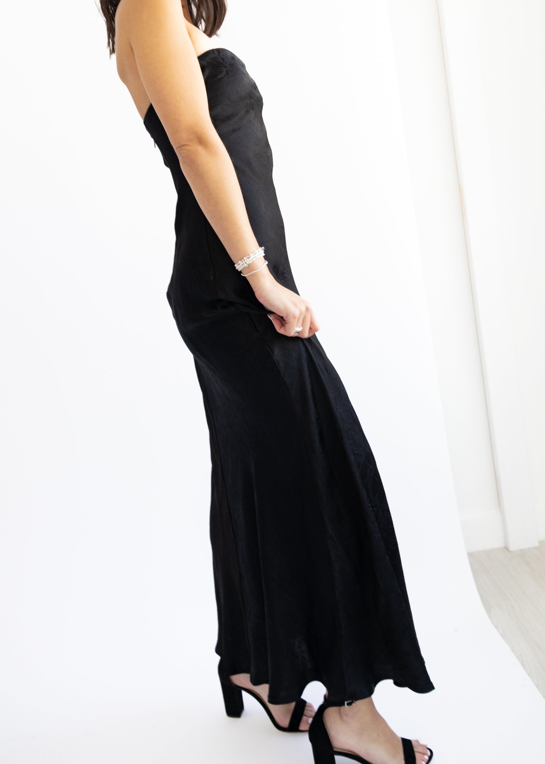 The Night Out Satin Dress combines elegance with a playful vibe in a strapless, long midi design. Crafted from high quality satin floral print, it drapes beautifully for a sleek silhouette that catches the light with every move. Perfect for an evening event or a special night out, this dress adds a touch of glamour while keeping the mood fun and flirty.