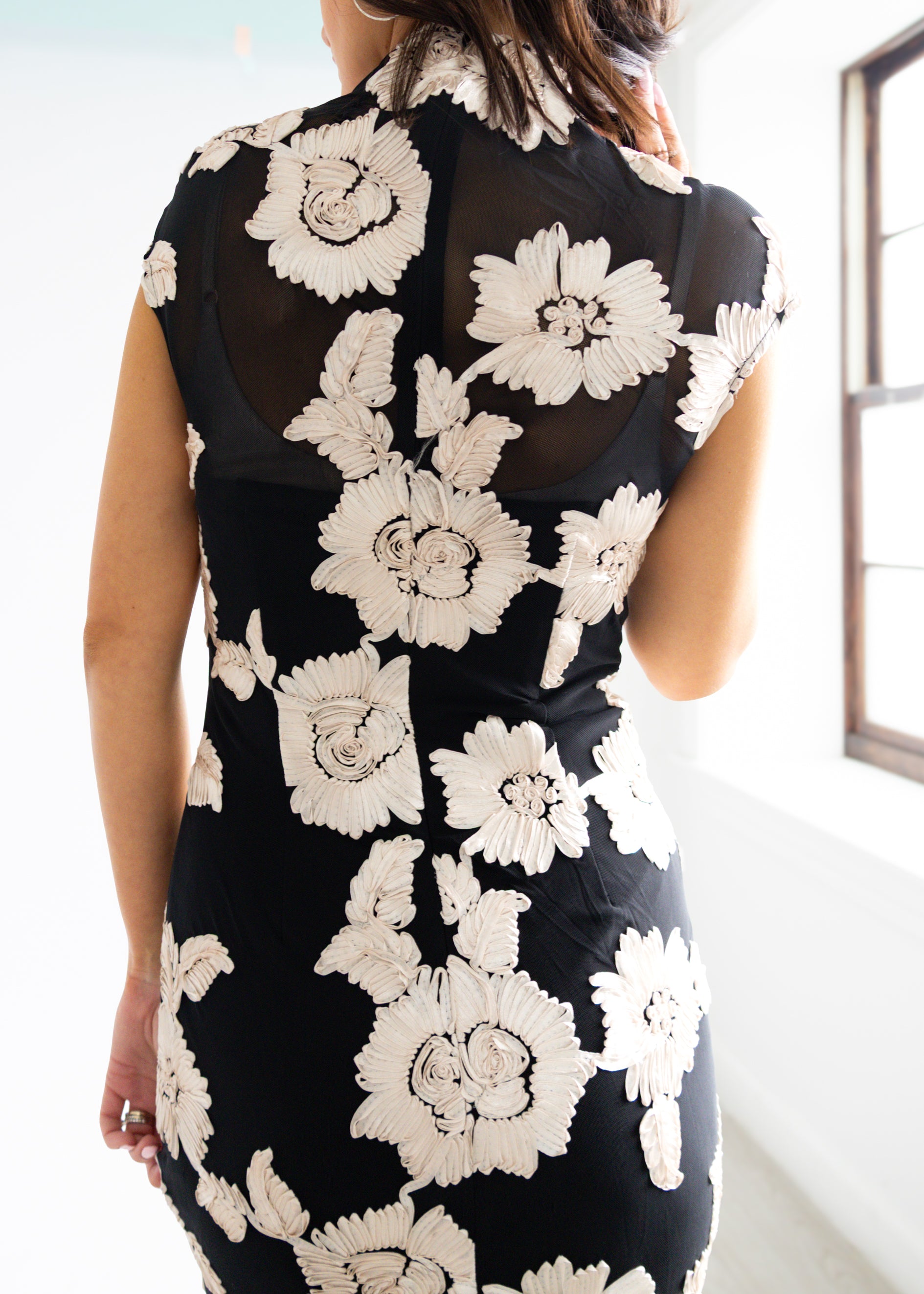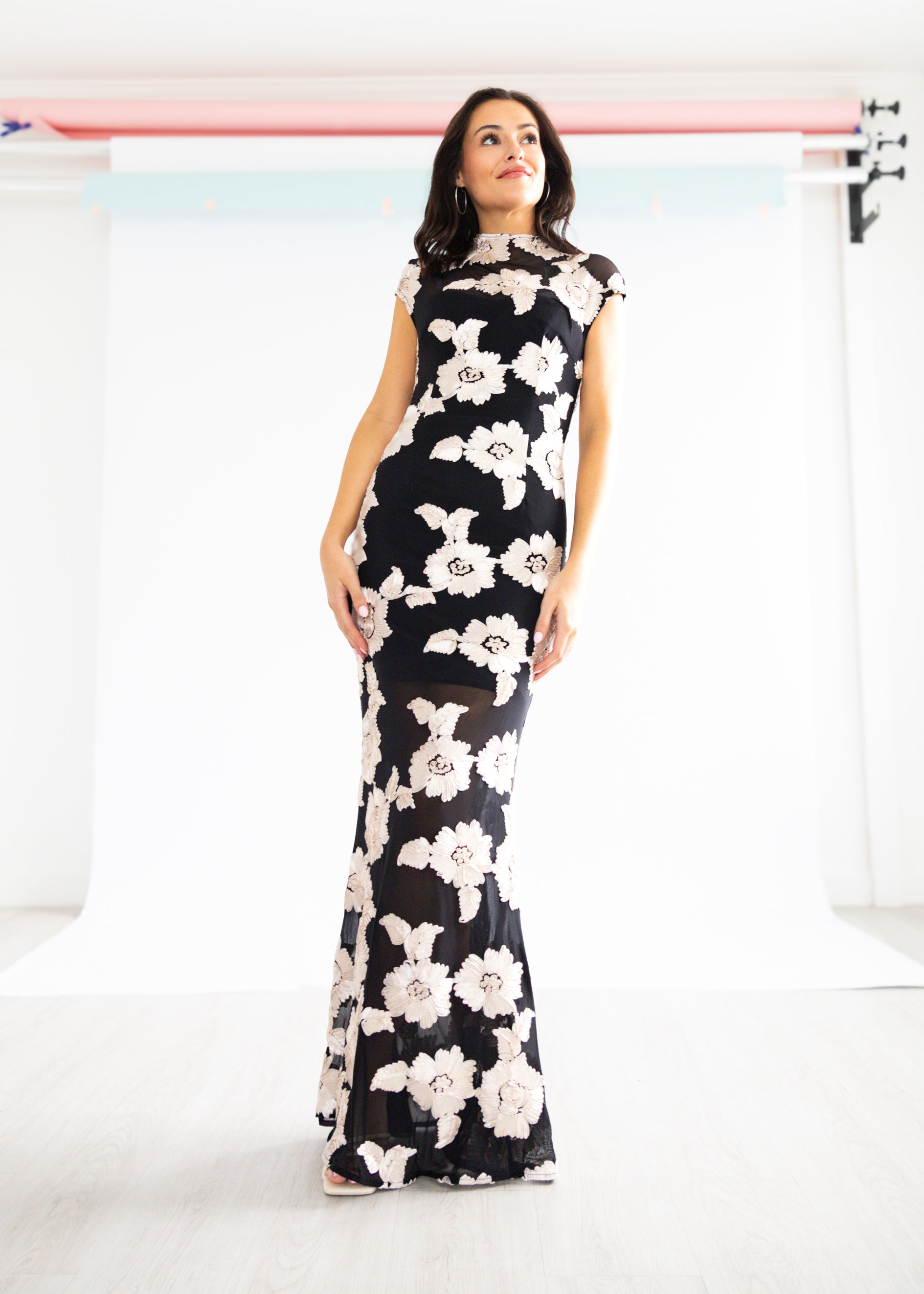 Ideal for black-tie events, gala dinners or weddings, this gown is your answer to floral glamour with a modern edge. Pair it with gold heels and refined accessories to complete the look.