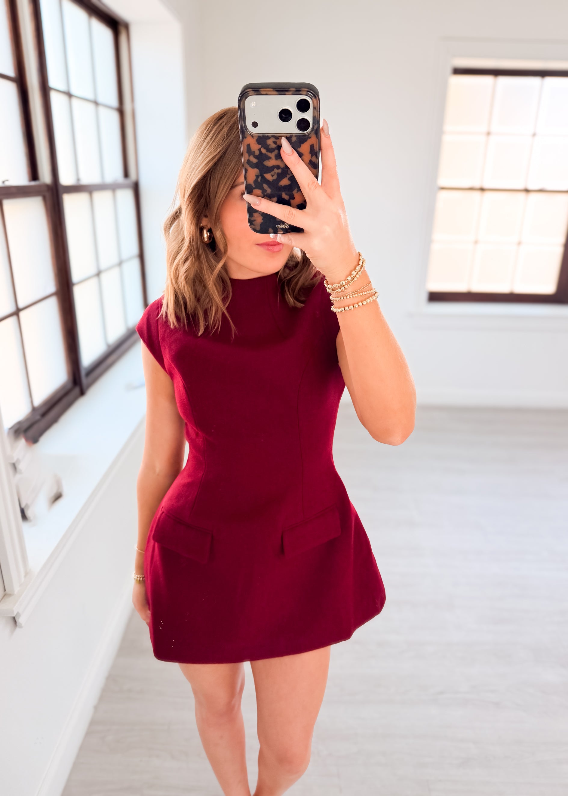 Turn heads in the Line + Dot Noelia Mini Dress, a bold Bordeaux stunner that demands attention. Featuring charming cap sleeves and faux flap pockets, this mini delivers serious style credentials. Slip on your favorite heels, swipe on a statement lip, and get ready for compliments all night long.