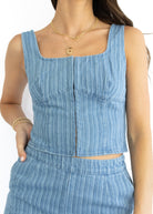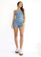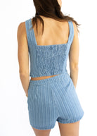 Get ready for sunny days with the Luna Denim Set! This playful matching outfit features a denim tank and shorts adorned with charming textured striped details. Perfect for casual outings or weekend fun, it combines comfort and style effortlessly. Embrace a fresh, youthful vibe with this easy-to-wear duo that’s sure to brighten your wardrobe worn together or styled seperatley!