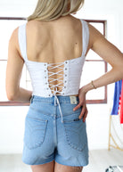 Add a fun and feminine touch to your summer look with the Nia Stan Top. This white tank boasts playful bow details and a lace up back, giving endless styling possibilities. Upgrade your style game this season!