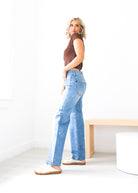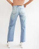 Mid-rise, straight leg with a subtle bow at the thigh and knee for an elevated barrel leg silhouette. Ankle length crop with a clean finish hem, crafted from rigid non-stretch denim for an expert fit that holds its shape.