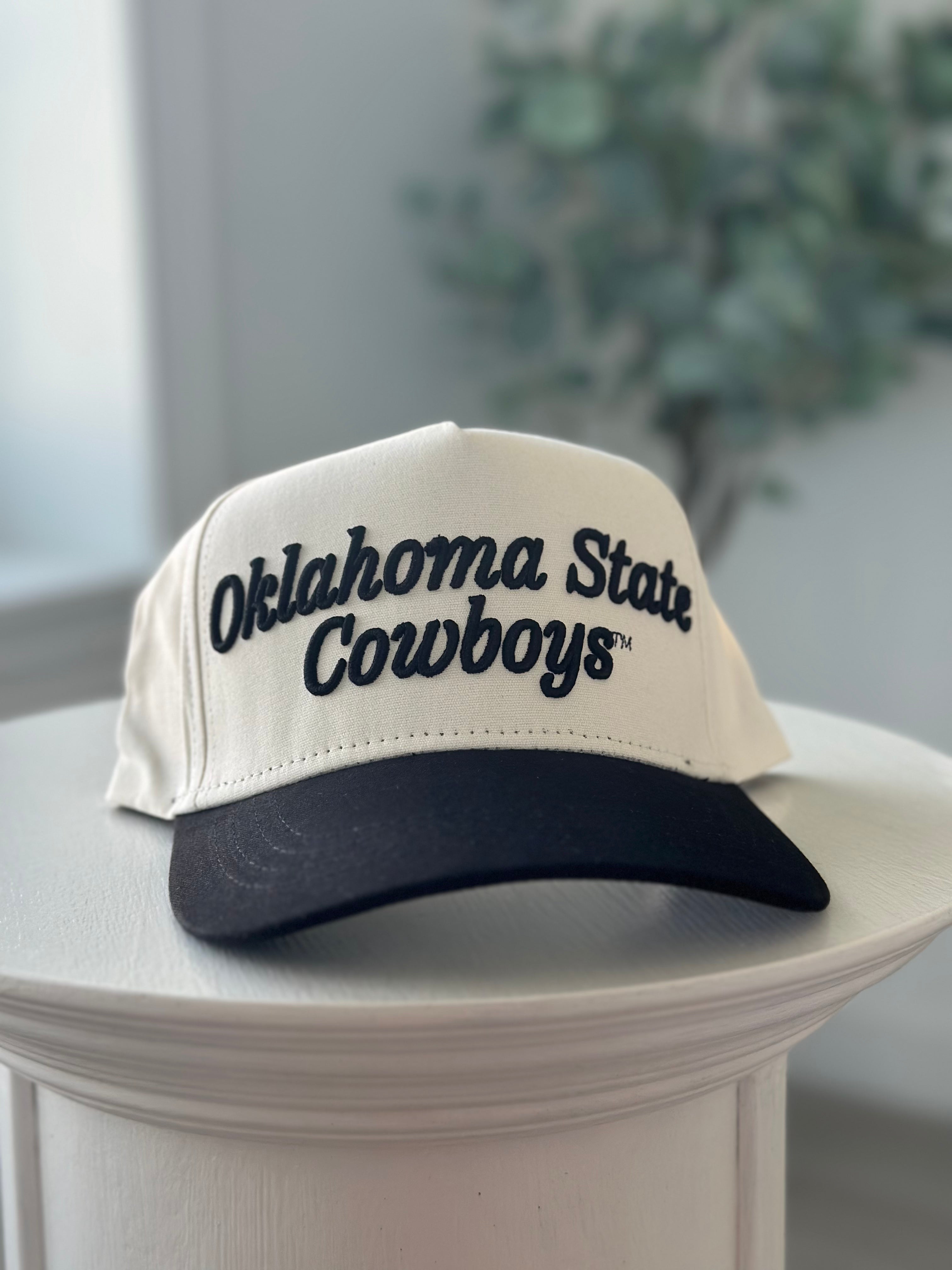 Step up your hat game with the Oklahoma State Cowboys Trucker Hat! This ivory beauty features bold black embroidered letters and an adjustable fit for ultimate comfort. Whether you're cheering on the Cowboys or just looking for some stylish headwear, this hat has got you covered. Go Pokes!