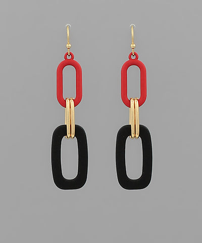 Add a splash of team spirit to your look with these Oval Linked Game Day Earrings in vibrant red and classic black. Their playful dangle drop design moves with you, making every cheer and celebration even more fun. Perfect for showing off your colors in style!