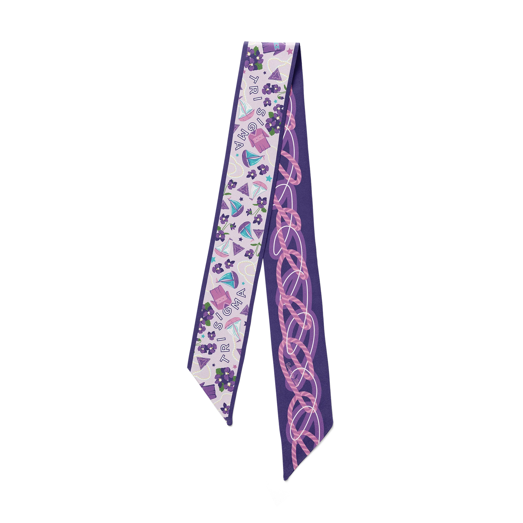 Elevate any look with this Tri Sigma Twilly Scarf, a versatile sorority accessory perfect for gameday. Weave it through a braid, wrap it around a ponytail, or tie it to your favorite everyday handbag for an instant chic boutique touch. Wear it as a bracelet, headband, or neck accent to proudly showcase your Tri Sigma pride wherever you go. Ideal for sorority gifts, gameday outfits, and trendy college fashion