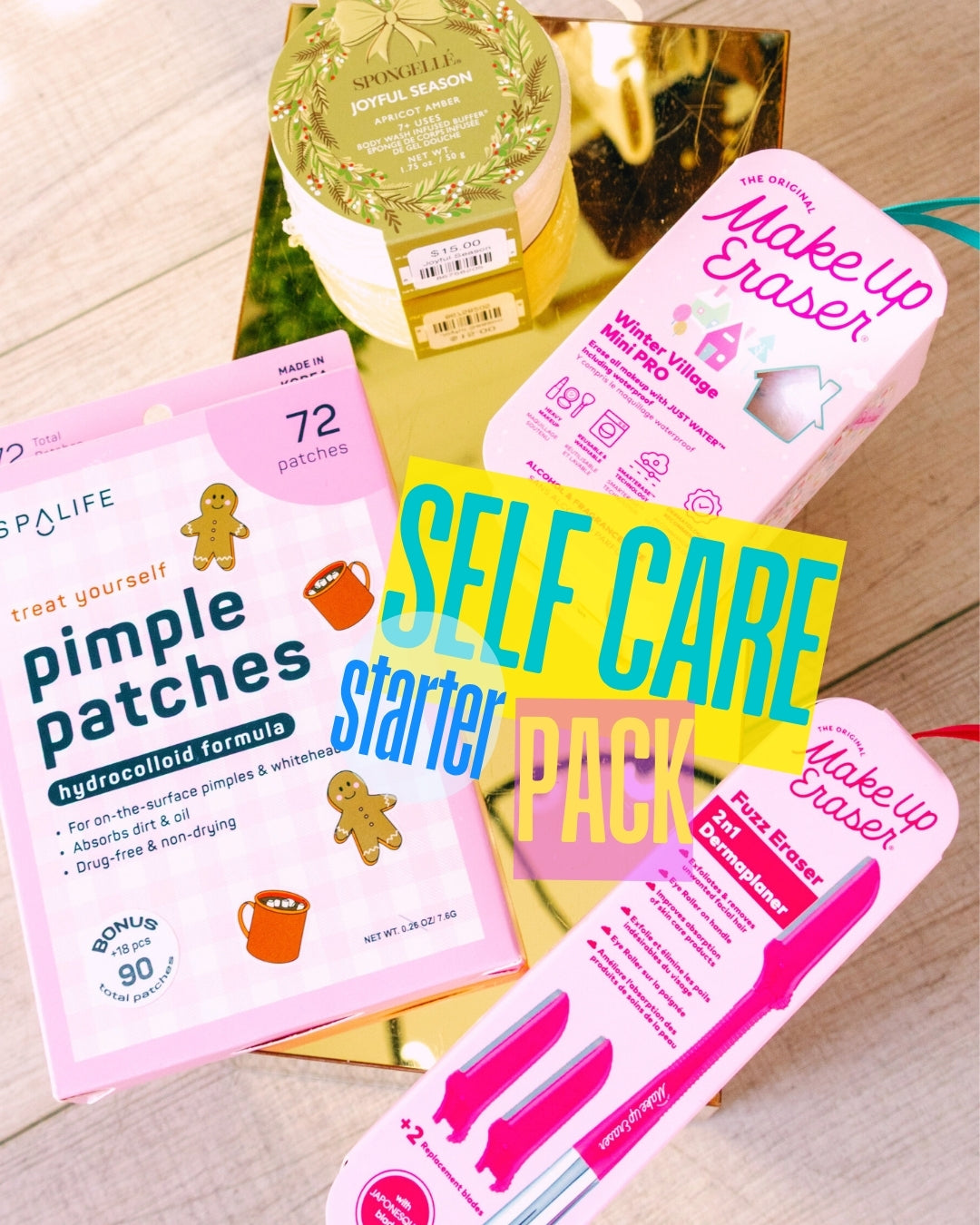 Say hello to your new go-to glow-up kit! Our Self Care Starter Pack has everything you need to feel refreshed, pampered, and put-together. Featuring a festive Spongellé body buffer for a luxurious cleanse, gentle MakeUp Eraser tools for effortless makeup removal and dermaplaning, and a pack of hydrocolloid pimple patches to calm and clear pesky breakouts—this bundle covers all the essentials. Whether you're gifting it or treating yourself, it’s the perfect way to kickstart a little “me time” and keep your skin happy all season long. 💕✨