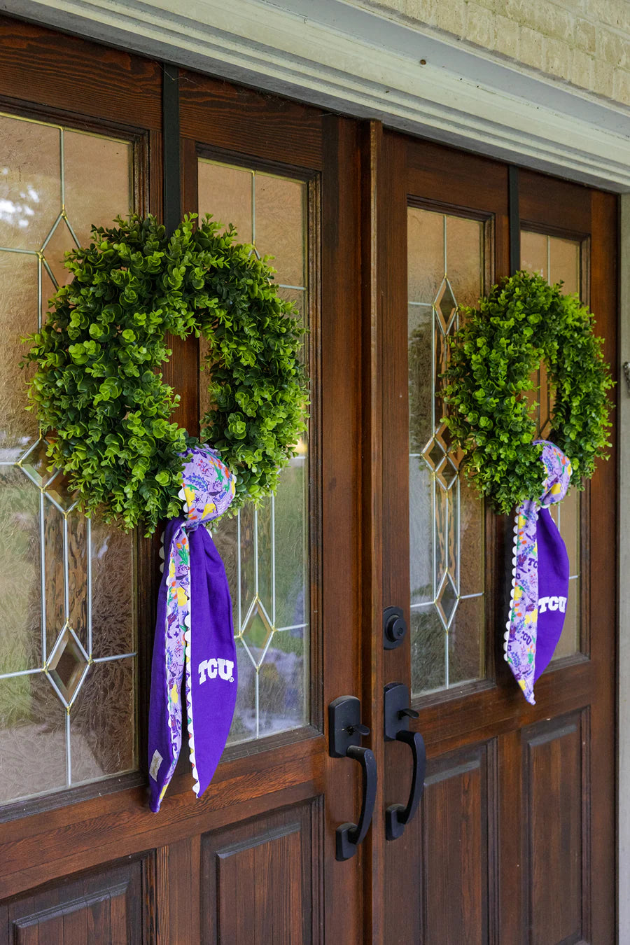Cheer on the Frogs with our TCU Horned Frogs Wreath Scarf—the perfect home accent for gameday and beyond. Made with 100% cotton canvas and trimmed with a ricrac border, it brings bold team spirit right to your front door.