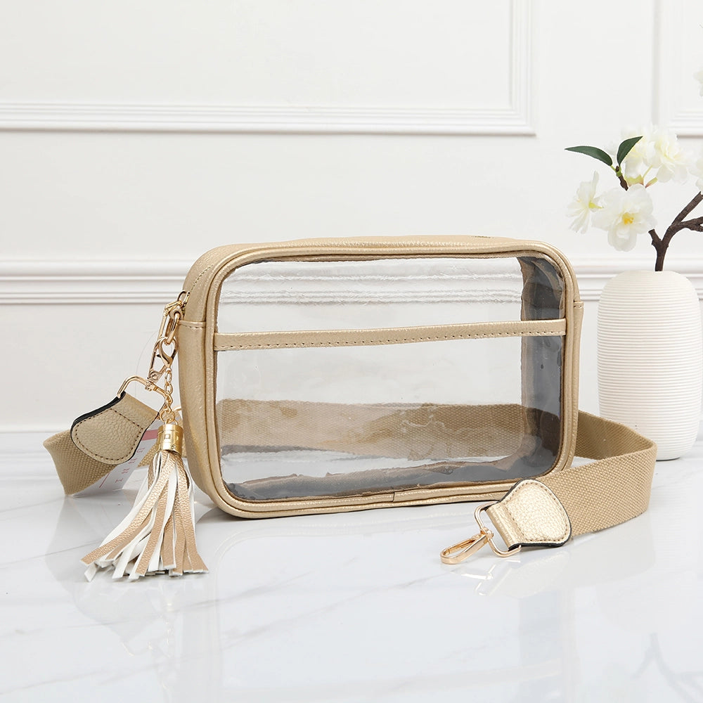 Cheer in style with the Clear Tassel Gameday Purse in gold! This see-through purse makes stadium entry quick and easy, while the removable tassel charm adds a playful pop to your game day look. Lightweight and fun, it’s the perfect accessory to keep your essentials close and your spirit high.