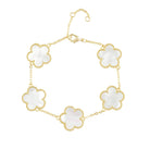 Elevate your everyday look with the Adleine Clover Bracelet, a timeless piece designed to shine. Featuring delicate clover charms in luminous mother of pearl, this bracelet adds just the right touch of elegance and sparkle. Perfect for stacking or wearing solo, it effortlessly transitions from casual days to special nights — a statement of luck, luxury, and lasting style.