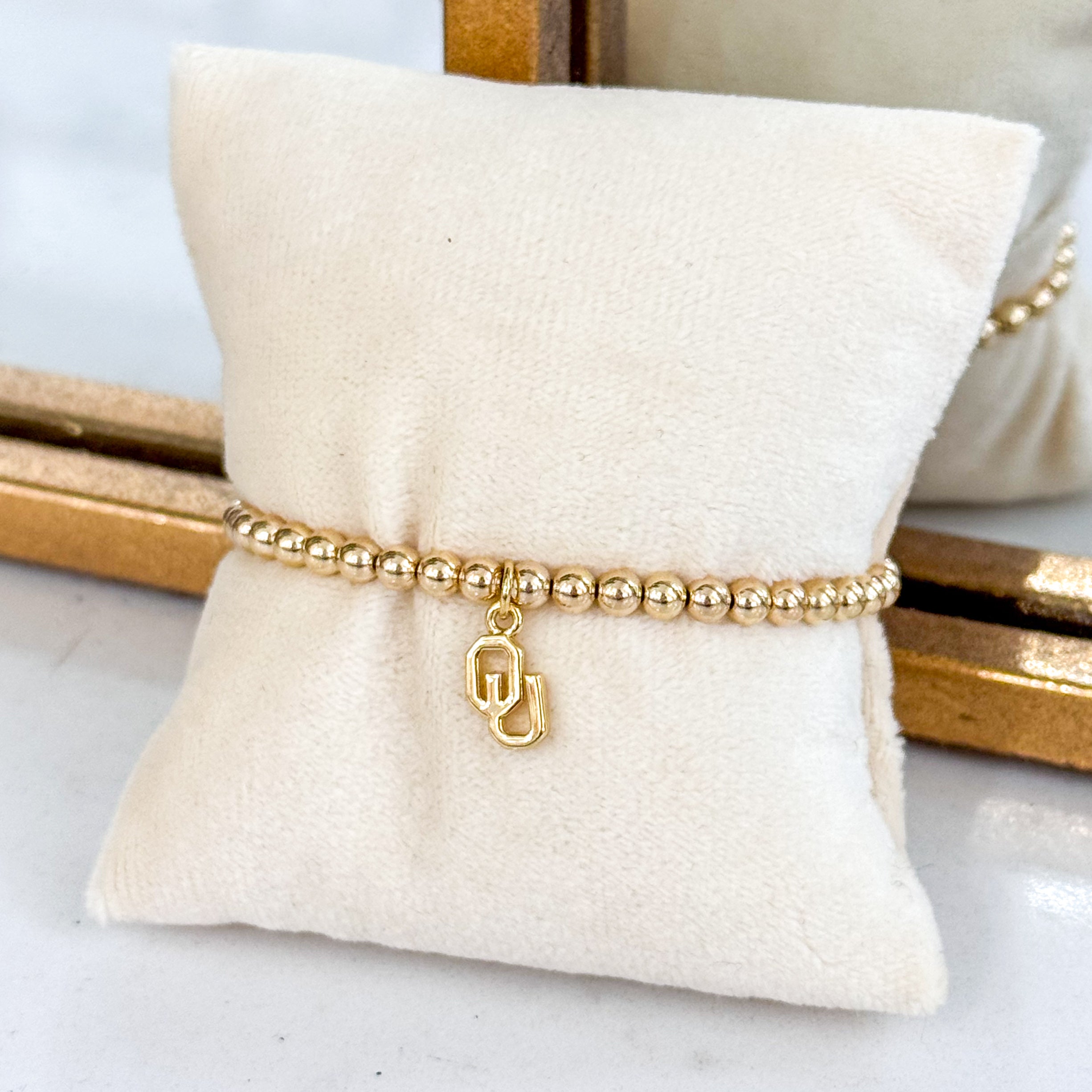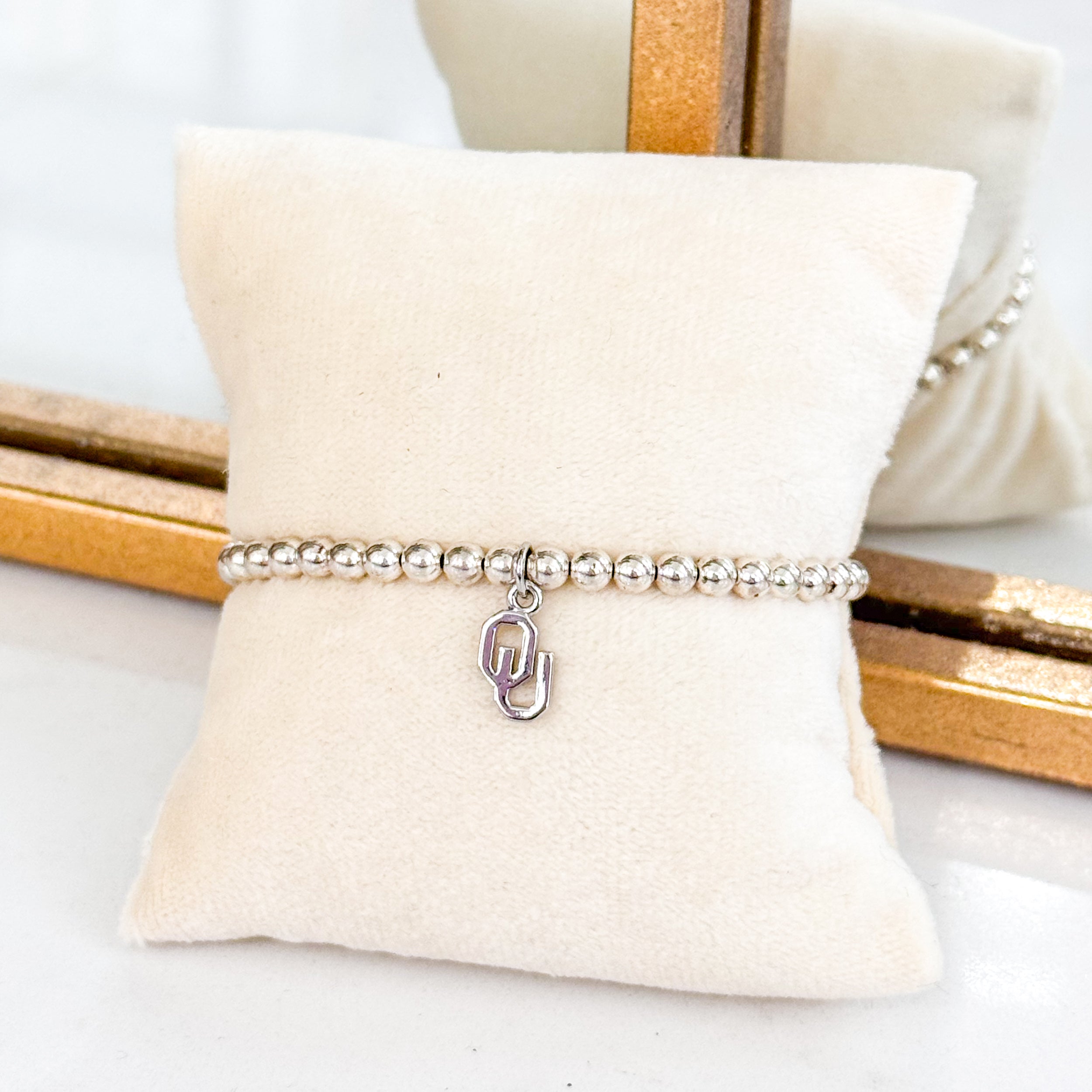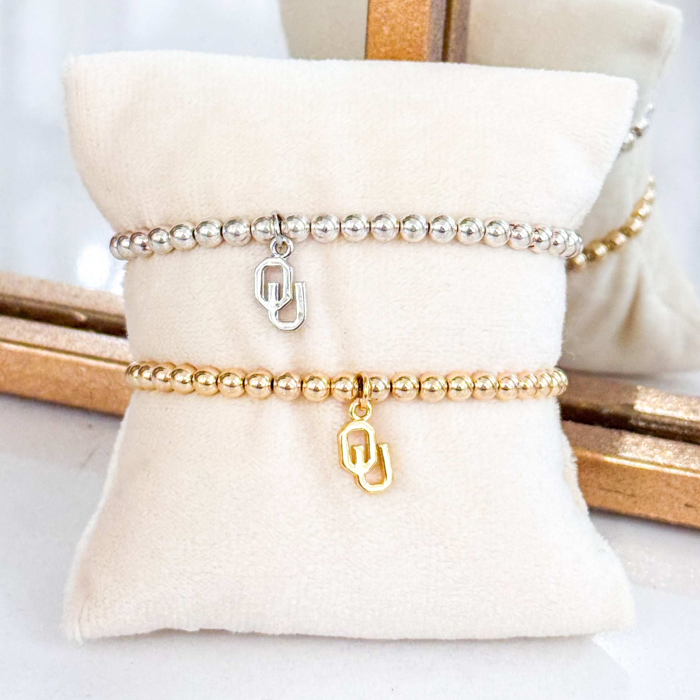Show your Sooner spirit in style with this delicate OU Beaded Bracelet. Crafted with your choice of sterling silver or gold-filled beads, this elevated gameday piece offers a polished, dainty look that stacks beautifully with all your favorite bracelets. Finished with a sleek OU charm, it’s the perfect way to add a subtle team touch to everyday outfits, tailgates, and game days alike.
