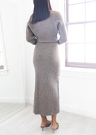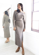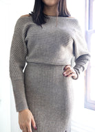 Wrap yourself in effortless elegance with our Line & Dot Alta Sweater Dress. Designed with a flattering off-the-shoulder neckline, this piece blends comfort and sophistication for any occasion. The fitted silhouette skims the body while the side slit adds a touch of movement and allure. Long sleeves keep it cozy, while the soft, stretch knit ensures all-day comfort. Perfect for everything from a chic dinner date to a polished daytime look, just pair it with heels or boots for a timeless outfit that turns heads.