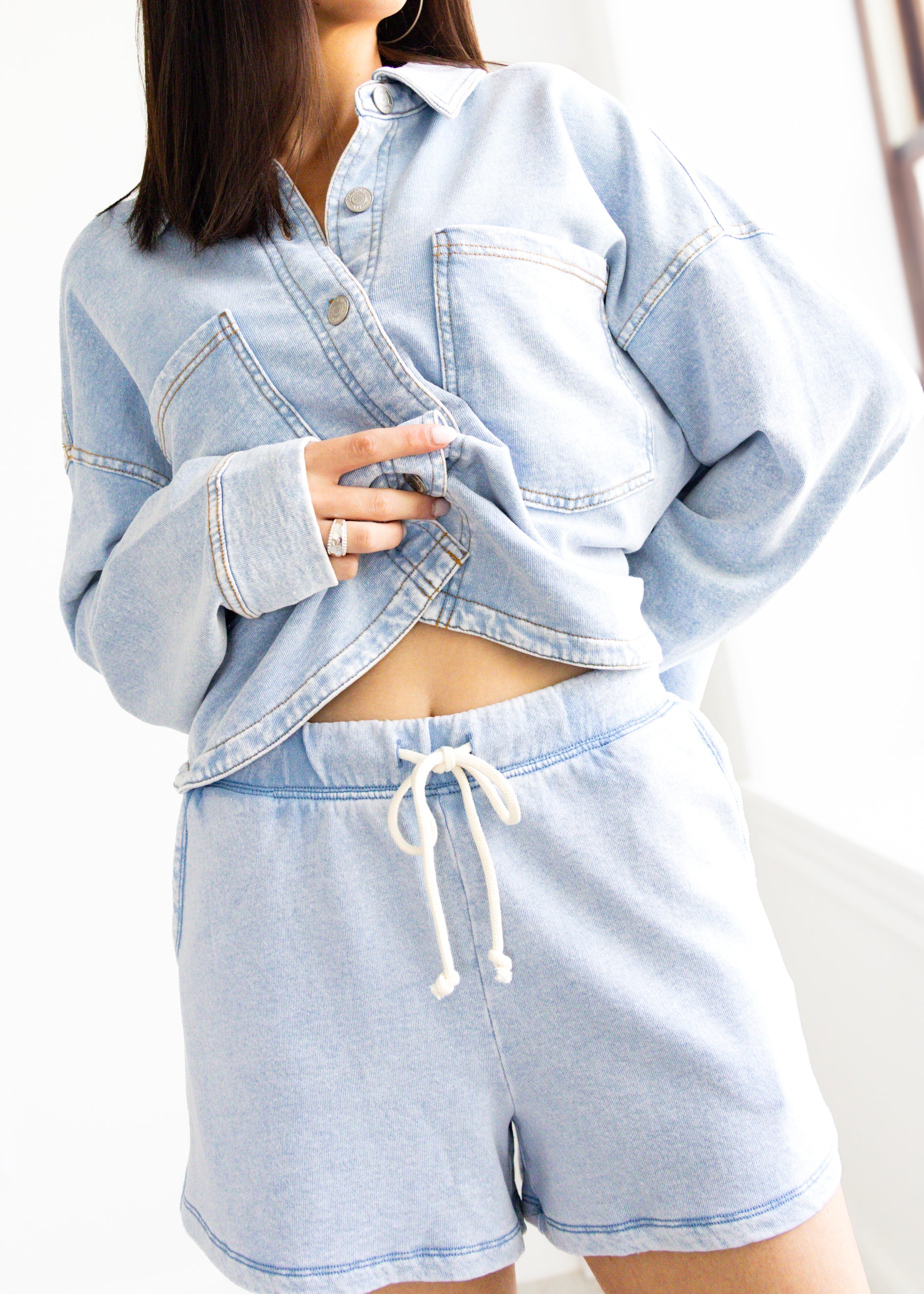 Kicked-back and cool, this knit denim French terry short has a lived-in look and feel. The contrast drawcord at the high-rise waist gives a little sporty twist, while the slash pockets keep it functional. Pair it with our Z Supply Cropped All Day Denim Jacket for the perfect, coordinated matching set!