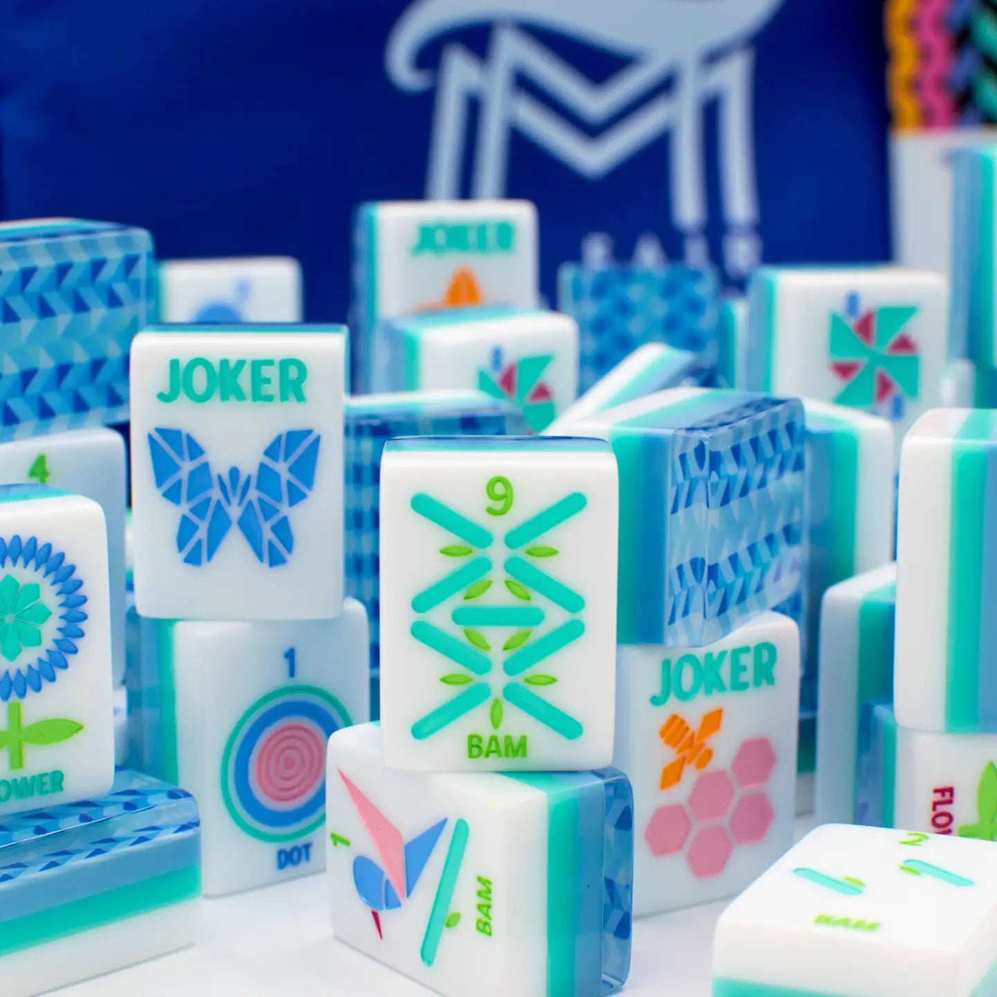 Meet the Prism Series Tile Set in Blue — a bold, modern Mahjong tile set designed for players who love vibrant color and striking geometric style. Part of the Crystal Collection, this delightfully chunky set features clearly labeled tiles for effortless identification, making it perfect for beginners, teaching games, or seasoned players who appreciate both whimsy and functionality. With its eye-catching blue palette, crisp angles, and unique contemporary design, this Mahjong set adds a fresh, stylish twist to game night. Beautifully crafted for smooth handling and easy play, the Prism Series Tile Set blends playful personality with elevated sophistication.
