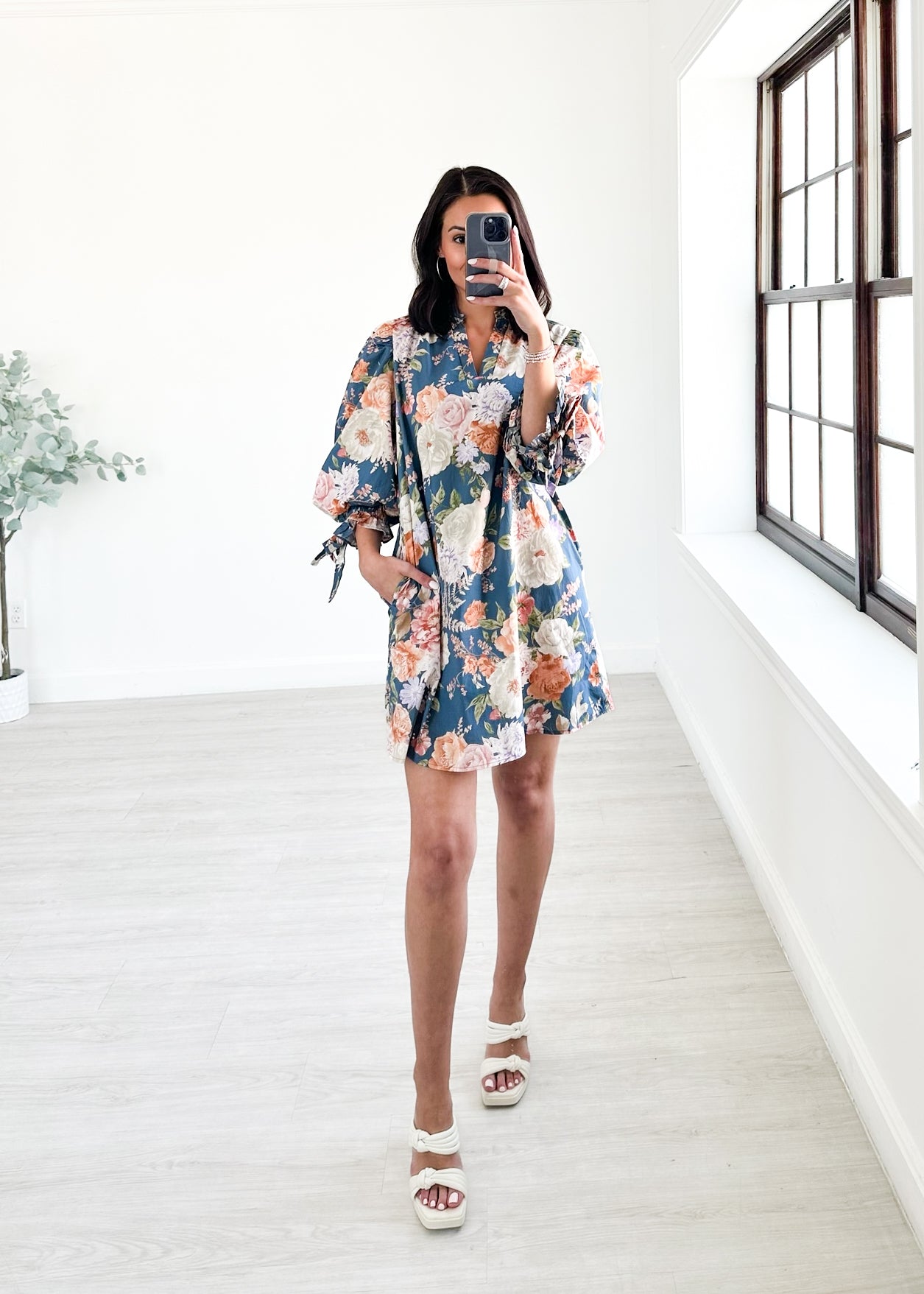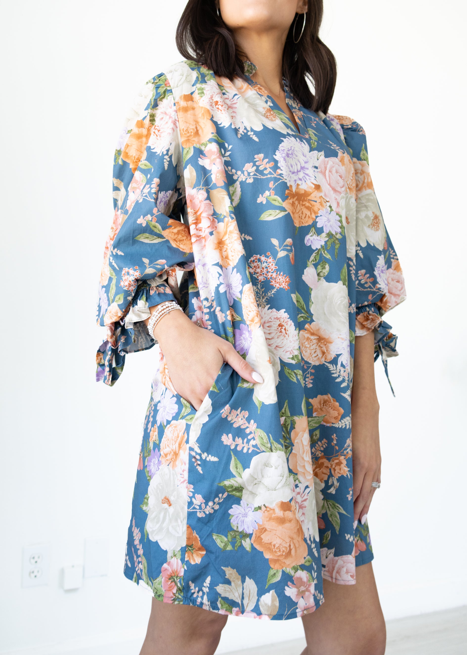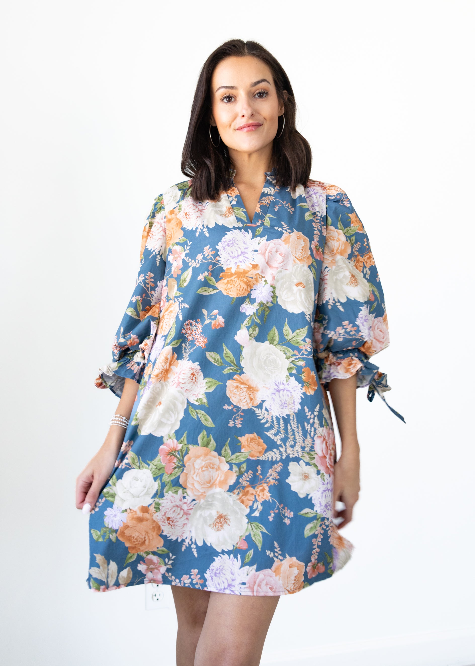 Step into spring all year long with the In Full Bloom Dress. Its slate color is the perfect backdrop for a lively floral print, bringing a playful charm to your wardrobe. The flowy fabric dances with your every move, making it effortlessly chic for brunch dates or garden parties. Embrace the joy of subtle elegance with this dress that combines comfort and style in one beautiful style!