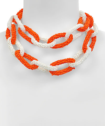 Score major style points with the Beaded Oval Link Necklace — the perfect mix of bold and chic for any occasion. Featuring lightweight oval links accented with statement beads, this necklace adds instant flair to any outfit. Whether you’re dressing up for gameday, brunch, or a night out, it brings just the right pop of color and team spirit to every look.
