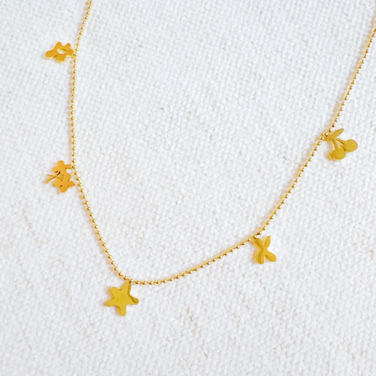 Add a playful touch to your style with the Lucky Picks Charm Chain Necklace. Featuring a mix of charming symbols on a sleek chain, this necklace brings a fun yet polished vibe to your everyday look.