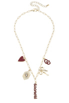 The Oklahoma Sooners Paper Clip Charm Collector Necklace in Shiny Gold offers a trendy and unique design. Featuring a gold paperclip chain with a Sooners logo charm, this necklace is perfect for layering or wearing on its own as a statement piece.