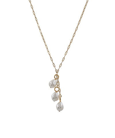 Delight in the charm of this dainty gold Three Pearl Y Necklace, where delicate pearls hang gracefully along a playful Y-shaped chain. It’s the perfect subtle sparkle to brighten your everyday look.