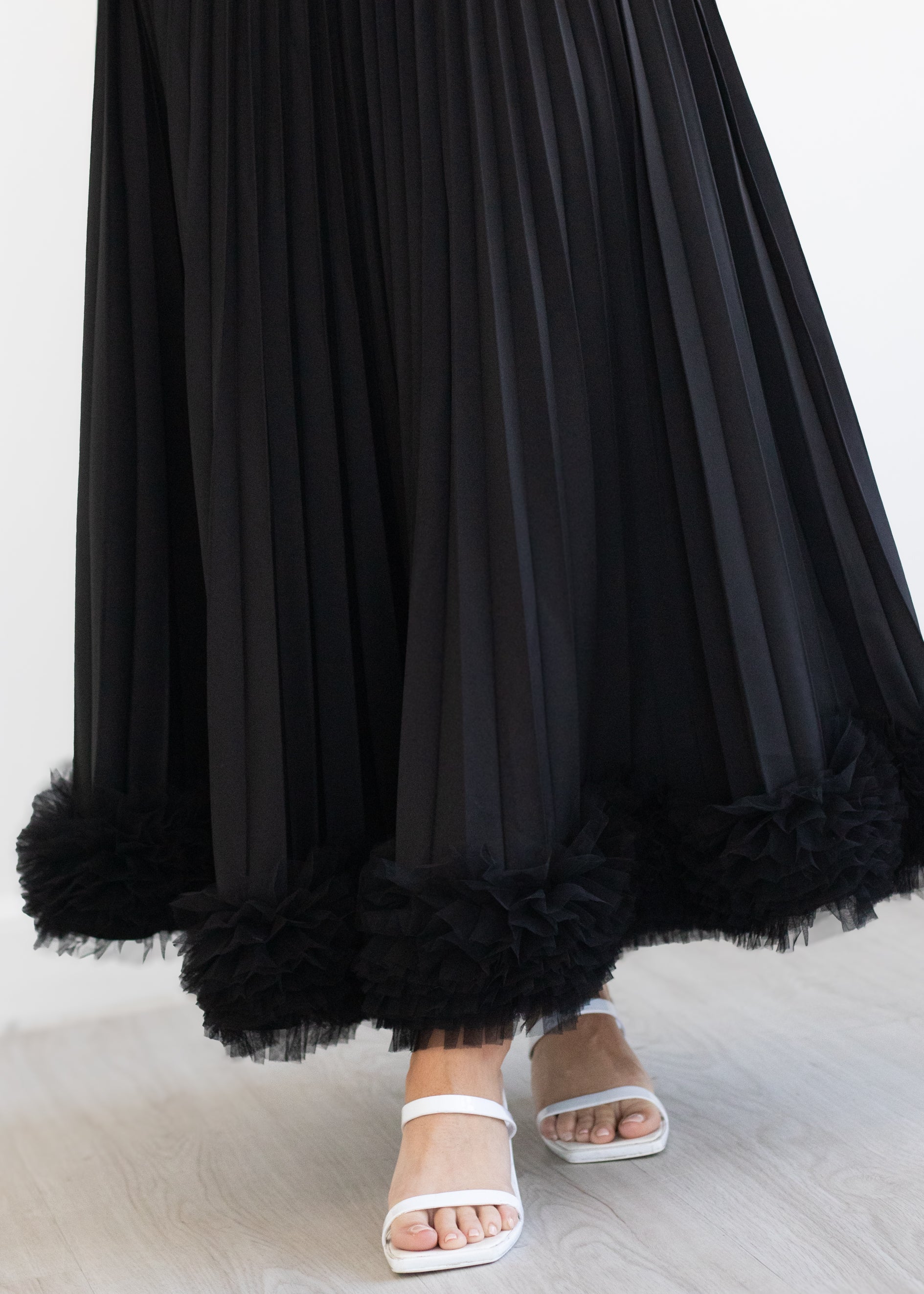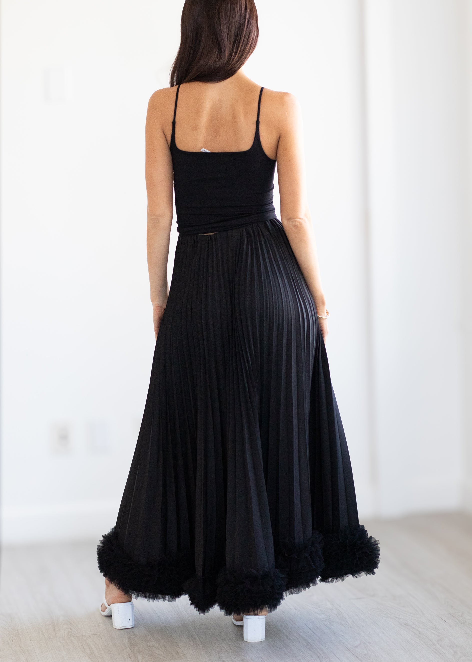 Take a bow—your new show-stopping skirt has arrived. The Encore Pleated Tulle Maxi Skirt delivers dramatic movement with its sweeping accordion pleats and luxe tulle-trimmed hem. Designed to float with every step, this full-length silhouette brings instant elegance to any occasion.
