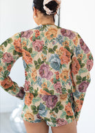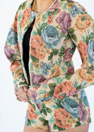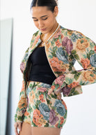 This floral tapestry jacket adds a statement finish to the Cambria matching set. Crafted from a mid-weight, non-stretch tapestry fabric, it features a structured cropped silhouette with dramatic puff sleeves for a fashion-forward look. Polished yet playful, this jacket is perfect for layering over the Cambria Top and Cambria Shorts or styling on its own with denim or tailored shorts for an elevated outfit.