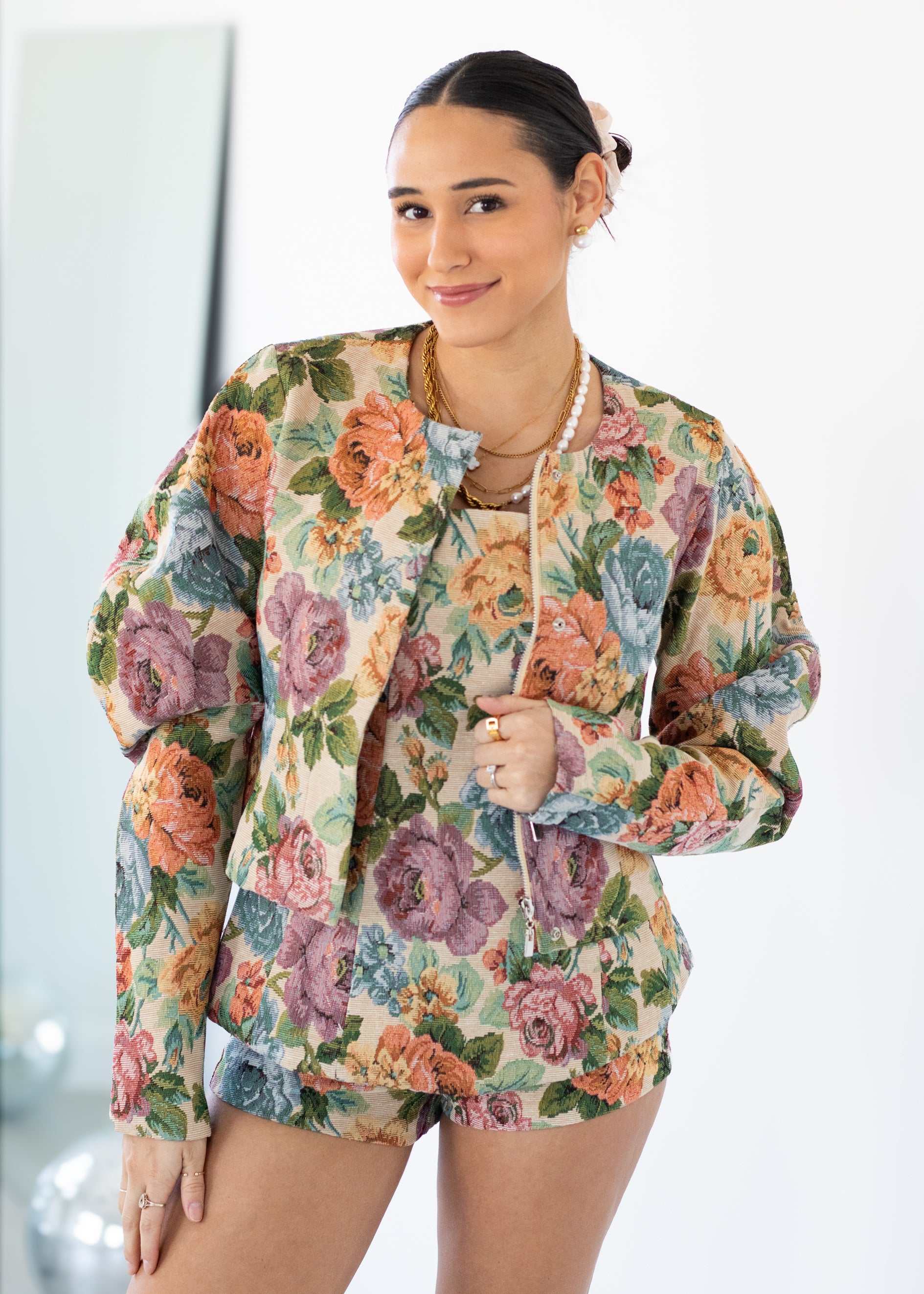 The Cambria Top is a standout strapless silhouette crafted from a mid-weight, non-stretch floral tapestry fabric for a structured and flattering fit. Designed with a tailored bodice and subtle peplum hem, this top creates a feminine shape while staying polished and secure. Perfect for special occasions, vacations, or styled as a matching set with the Cambria Shorts and Cambria Jacket, it’s an effortlessly elevated piece you’ll reach for all season long.