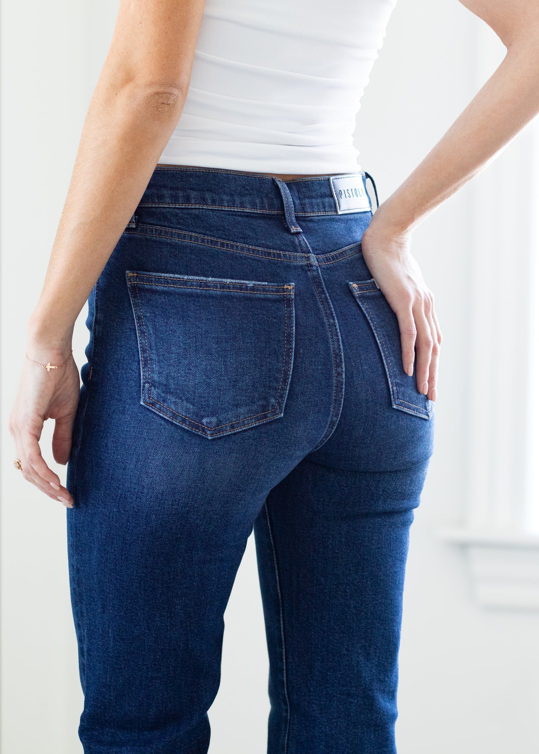 The slim boot that flatters every frame. Evie sits at a high rise with a slim fit through the hips and thighs before opening to a subtle bootcut, creating long, lean lines with just the right amount of flare. The full-length 33" inseam elongates the silhouette, making it endlessly versatile for heels or boots. Crafted from comfort stretch denim in Penthouse, a dark indigo wash with refined fading that adds depth and sophistication.