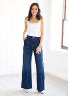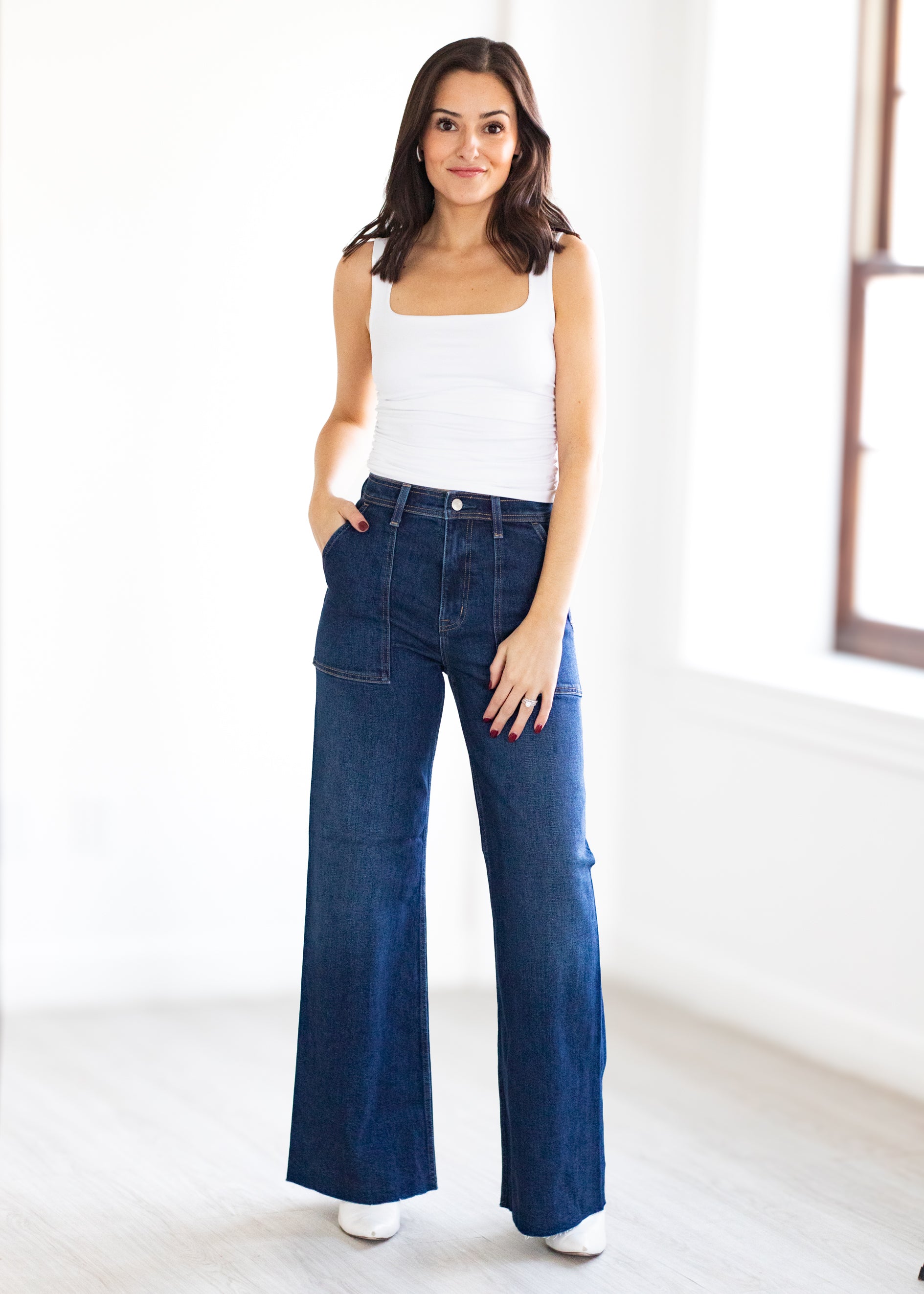 The wide leg that changes everything. Penny sits at a high rise with an ultra wide leg silhouette and full-length 28" inseam. The relaxed wide leg flows beautifully while the high rise anchors the proportions perfectly. Utility-inspired details add functional appeal to the contemporary silhouette. Crafted from our comfort stretch denim in Calluna, a deep indigo wash.