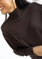 • Long sleeve top with ribbed mock neck, cuffs, and hem