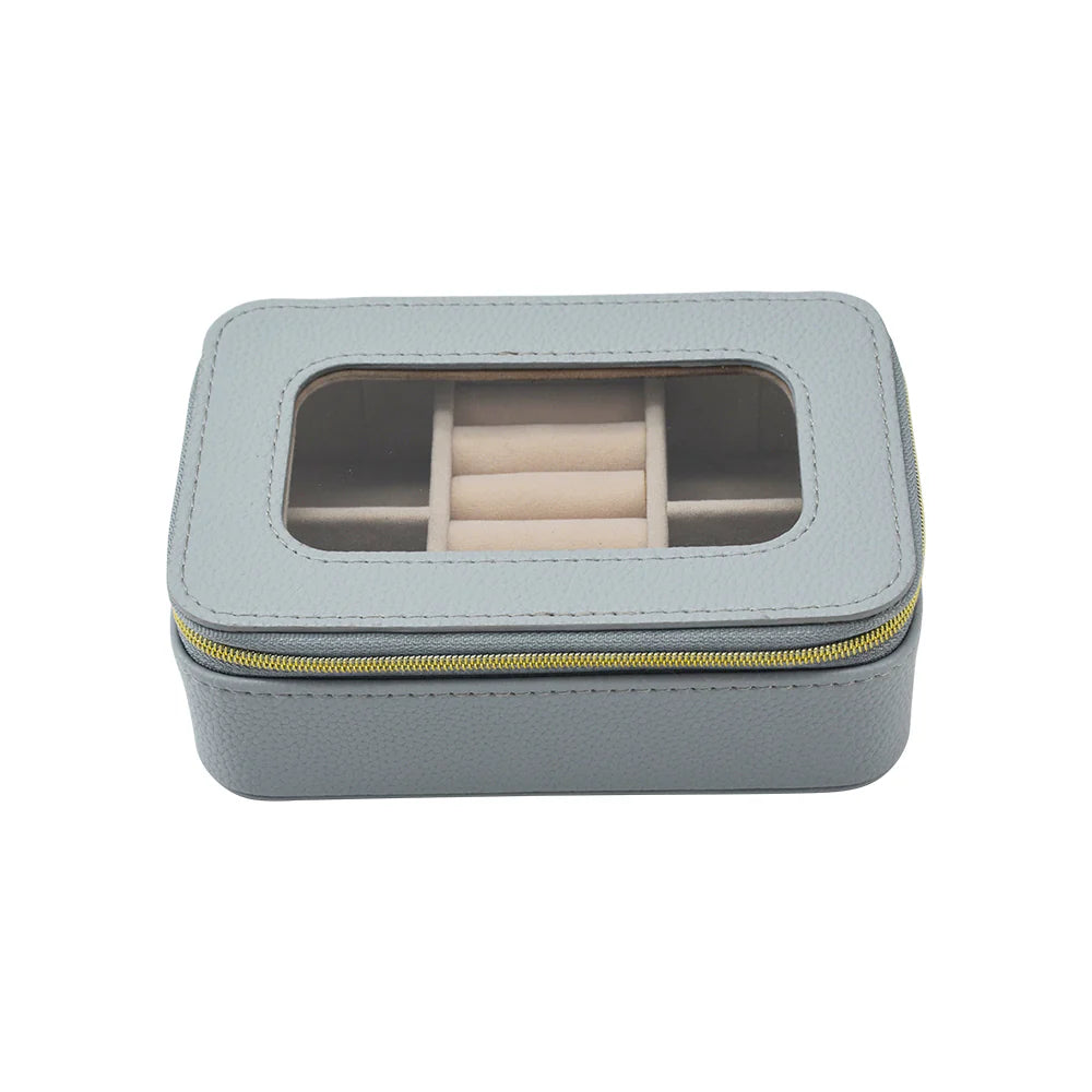 Leah Clear Top Jewelry Case - Light Grey