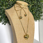 Add a touch of golden shine with this gold vegan leather cord wrap necklace, featuring a polished gold heart pendant and two petite hearts at each end. Lightweight, adjustable, and effortlessly chic, it’s perfect for layering or wearing solo as a minimalist statement. A versatile everyday accessory and sure boutique bestseller, this wrap necklace brings warmth, elegance, and modern charm to any outfit.