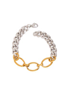 Introducing the Kaitlyn Bracelet, an elevated staple that blends timeless elegance with modern edge. Crafted from durable 18k gold-plated stainless steel, this two-toned link and chain design delivers a chic, versatile look that pairs effortlessly with both everyday outfits and dressed-up moments.