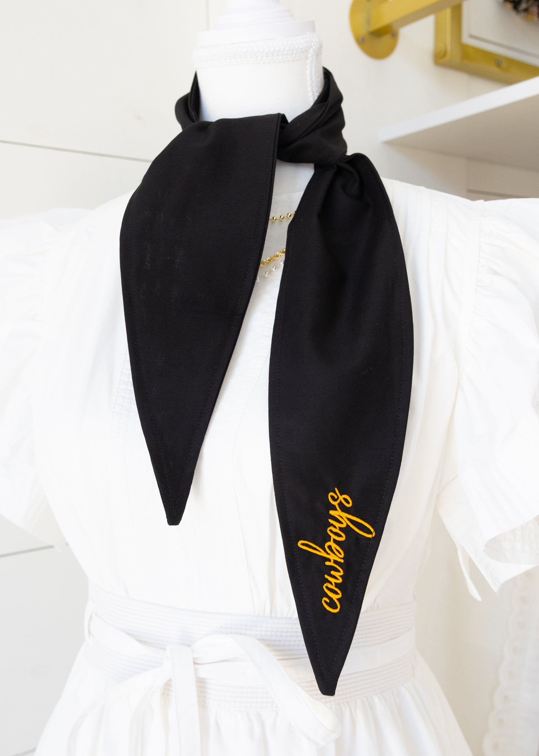 Add a bold pop of orange pride with this OSU ascot scarf, featuring orange embroidered "cowboys". Measuring approx. 38-43 inches in length, this fabulous scarf is perfect to wear as a classic neck accent, a stylish tote bag accessory, or even tied to your hair for a chic look.
