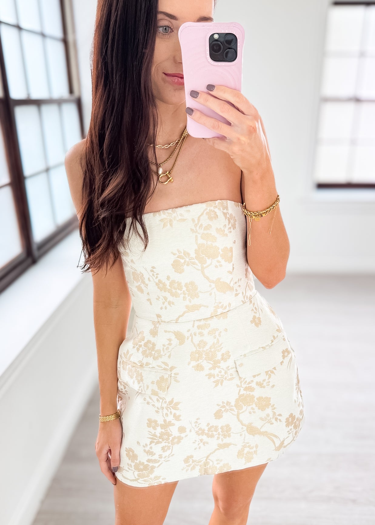 Amanda Uprichard Bethany Strapless Romper Dress - White Gold