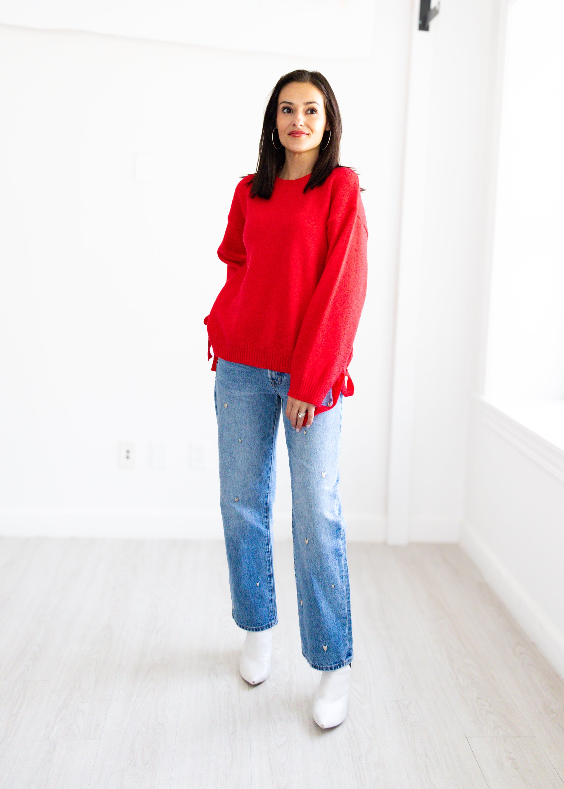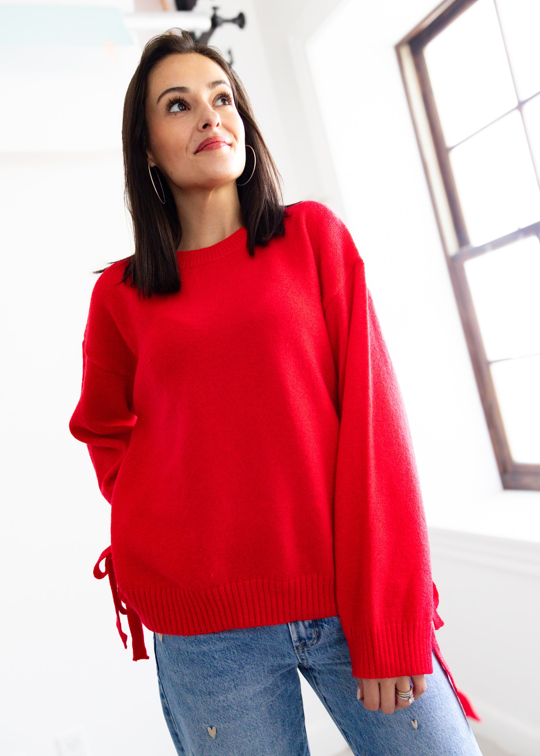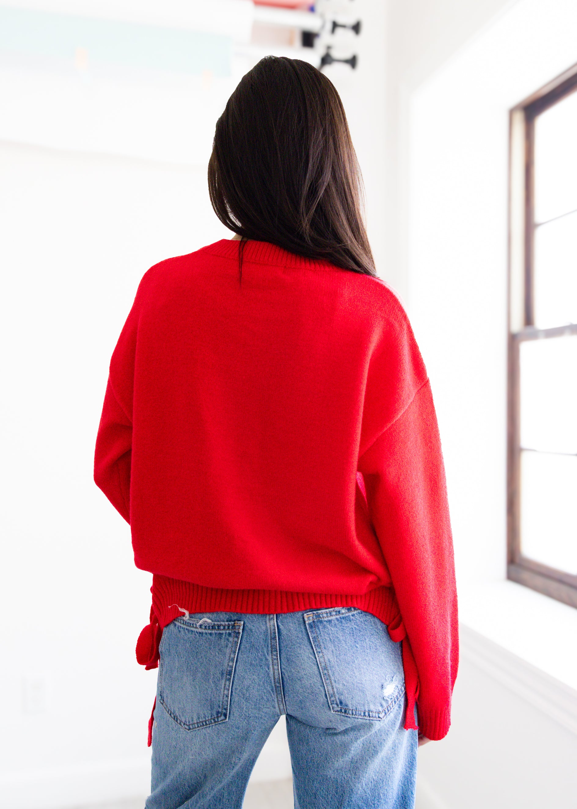 Cozy up in the Campus Core Sweater, a playful twist on your classic knit. Featuring a charming side tie detail, this sweater adds a fun, flirty touch to your everyday look while keeping you warm and comfy. Perfect for layering or wearing solo, it’s your new go-to for effortless style with a little extra flair!