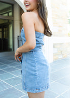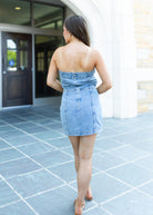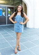 This playful denim dress features built-in shorts for comfort and coverage, making it perfect for active days. Functional buttons run down the front, adding a stylish touch and easy wearability. The Amanda Uprichard Scorpio Skort Romper blends casual charm with practical design, ideal for sunny adventures or laid-back outings.