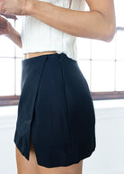 Elevate your wardrobe with the Black Tweed Asymmetrical Wrap Skort, where timeless elegance meets a playful twist. This chic piece combines classic tweed texture with a modern asymmetrical wrap design, offering a flattering fit that moves with you. Perfect for dressing up or down, it adds a dash of sophistication and fun to any outfit.