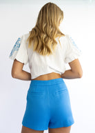 Step into summer fun with the Tate Tailored Shorts in bright blue! These tailored shorts offer a perfect fit that’s both flattering and comfortable, making them your go-to for sunny days and playful adventures. Add a pop of color and a dash of style to your wardrobe with these vibrant, easy-to-wear shorts.