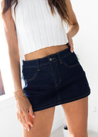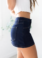 Add a fun twist to your look with this Dark Wash Denim Mini Skort. Combining the cool vibe of denim with the comfort of shorts, it’s perfect for playful days out or casual hangouts. The dark wash gives it a sleek, versatile edge that pairs well with anything from tees to blouses. Stay stylish and ready for anything with this flirty, easy-to-wear piece.